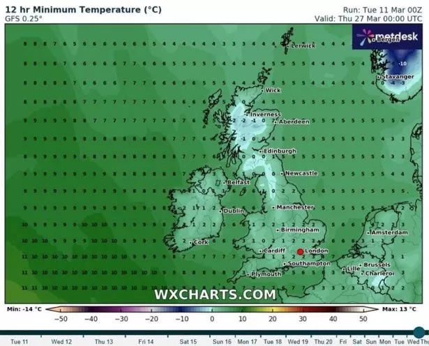 3月26日(星期四)午夜,全国大部分地区的气温将降至冰点以下。这将是苏格兰最冷的一天,考虑到风寒,因弗内斯周围的气温预计在零下8摄氏度左右。
