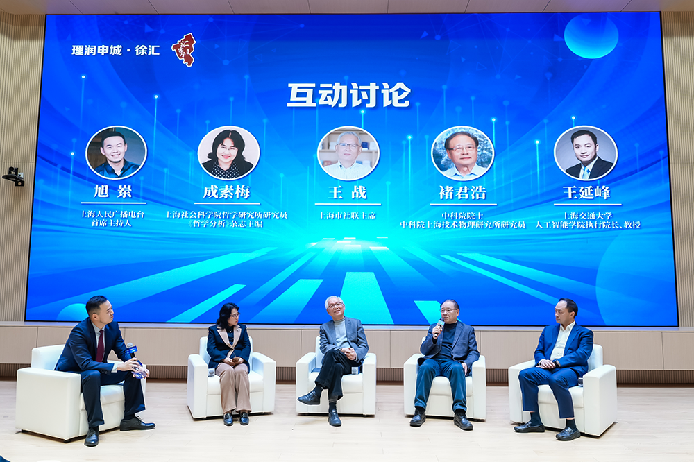 随后,上海交通大学人工智能学院执行院长、教授王延峰,上海社科院哲学研究所研究员、《哲学分析》杂志主编成素梅与两位演讲嘉宾展开互动讨论。