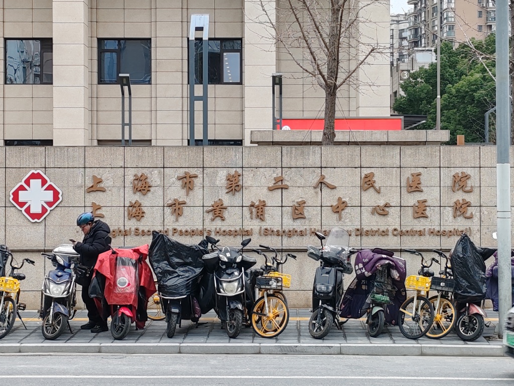 2025年3月14日,普育东路,上海九院黄浦分院门诊大楼已经挂上“上海市第二人民医院”的标识。 本文图片均由 澎湃新闻记者 陈斯斯 实习生 朱佳佳 摄
