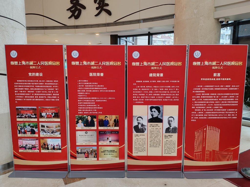 针对恢复冠名的原因,从该院展出的历史资料可见端倪。院内展出的资料显示,上海市第二人民医院是一所集医疗、教学、科研、预防保健为一体的二级甲等综合性医院。医院创建于1904年,原名“上海医院”,是国人在沪上创办的第一所中西医并治医院,曾获国家级百佳医院、全国规范服务十家示范医院等荣誉。2018年,上海市第二人民医院与原黄浦区中心医院、原黄浦区传染病医院、原黄浦区妇幼保健院整合迁建为“上海交通大学医学院附属第九人民医院黄浦分院”。2025年伊始,为更有力地推动区属公立医院能级提升,全力打造高质量区域医疗中心,在市委编办、市卫生健康委、区委区政府的大力支持和指导下,恢复“上海市第二人民医院”冠名。