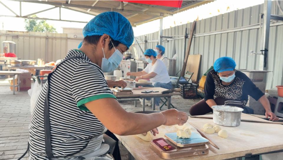 " 我跟老人们说,只要在家闲着没事儿,都可以来加入咱村的烙馍队。" 村民做的手工烙馍、馒头打开销路后,周根灿动员更多老人参与进来,尤其是独居老人,走出家门融入大集体后状态明显好多了。目前,老年烙馍队约有 60 人,忙起来每人每天能挣八九十块钱。