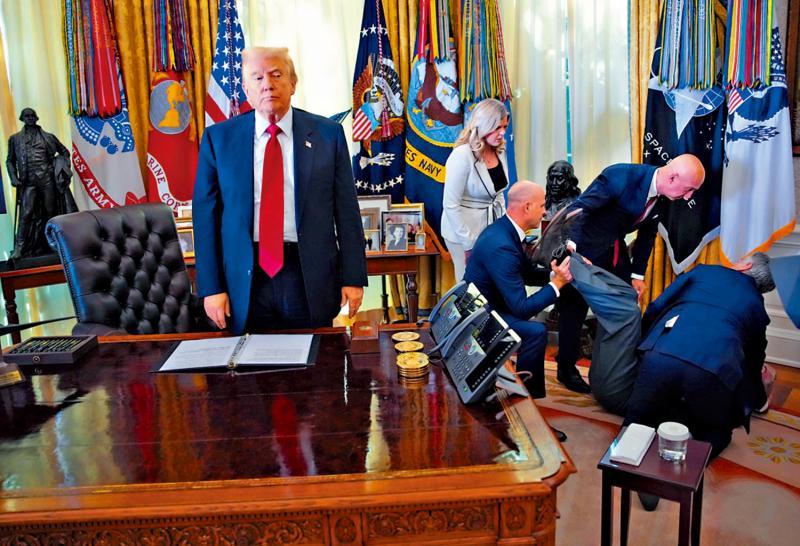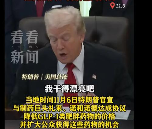 11 月 6 日的白宫发布会上,特朗普高调宣布,经过自己与药企的谈判后,减肥药即将大降价,发布会开着开着,他身后的一位谈判代表,突然两腿发软,瘫倒在地上,发布会因此紧急中断。