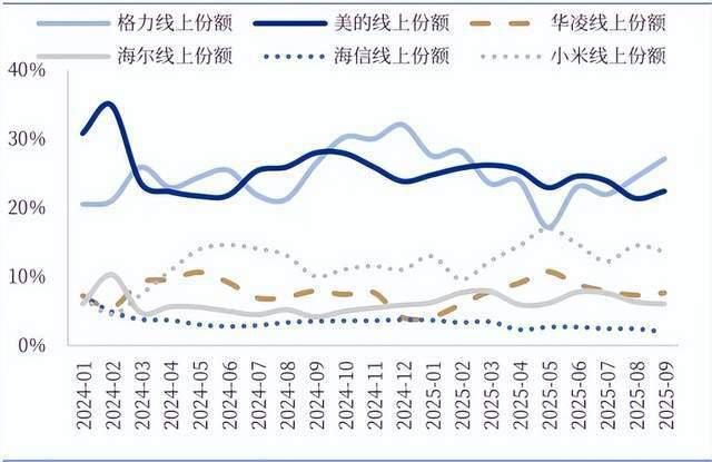 在银河证券的研报中,今年 6 月,小米与格力在空调市场的线上零售额份额首次交汇,但在后期快速拉开差距,格力仍保持领先。