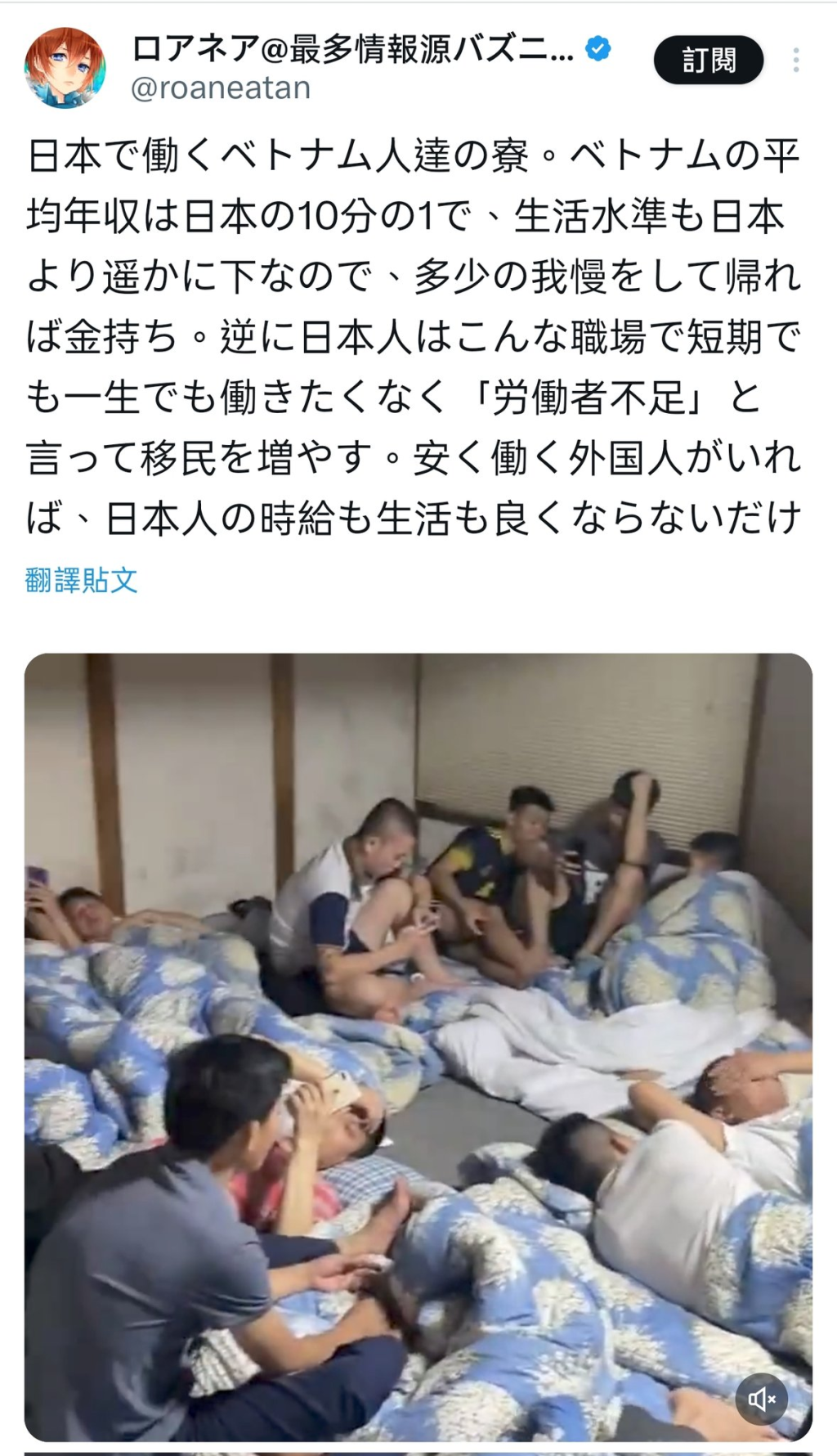 在日本工作的越南人的宿舍。有日本网友认为:越南人的平均年收入是日本的十分之一,只要有以“劳动力短缺”为由增加的廉价打工移民,日本人的时薪和生活水平就不会改善。