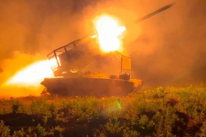 ▲俄罗斯火箭炮在向库尔斯克地区发射炮弹。(图片来源:美联社)