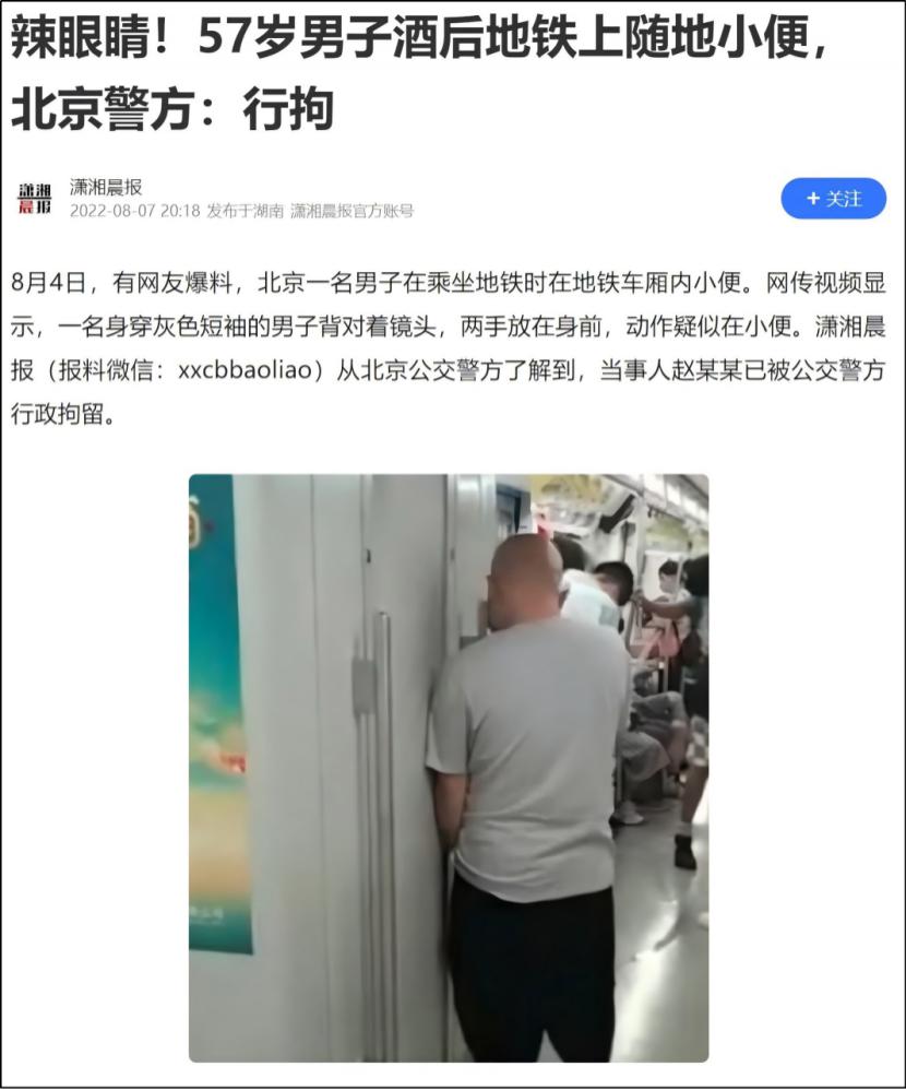 但即使如此,还是有人在随处可见厕所的城市里,坐地铁时随地大小便。