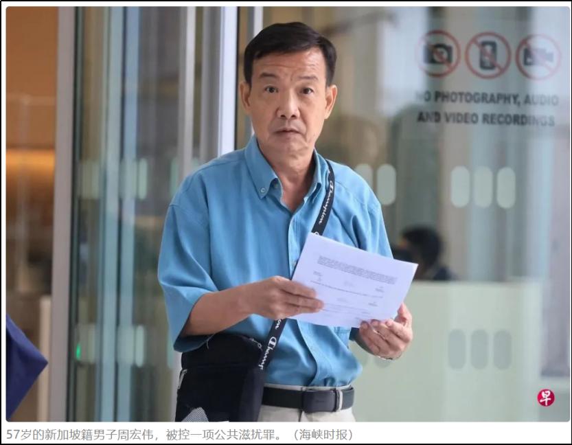 57 岁的新加坡籍男子周宏伟,在乘客服务中心处小便。