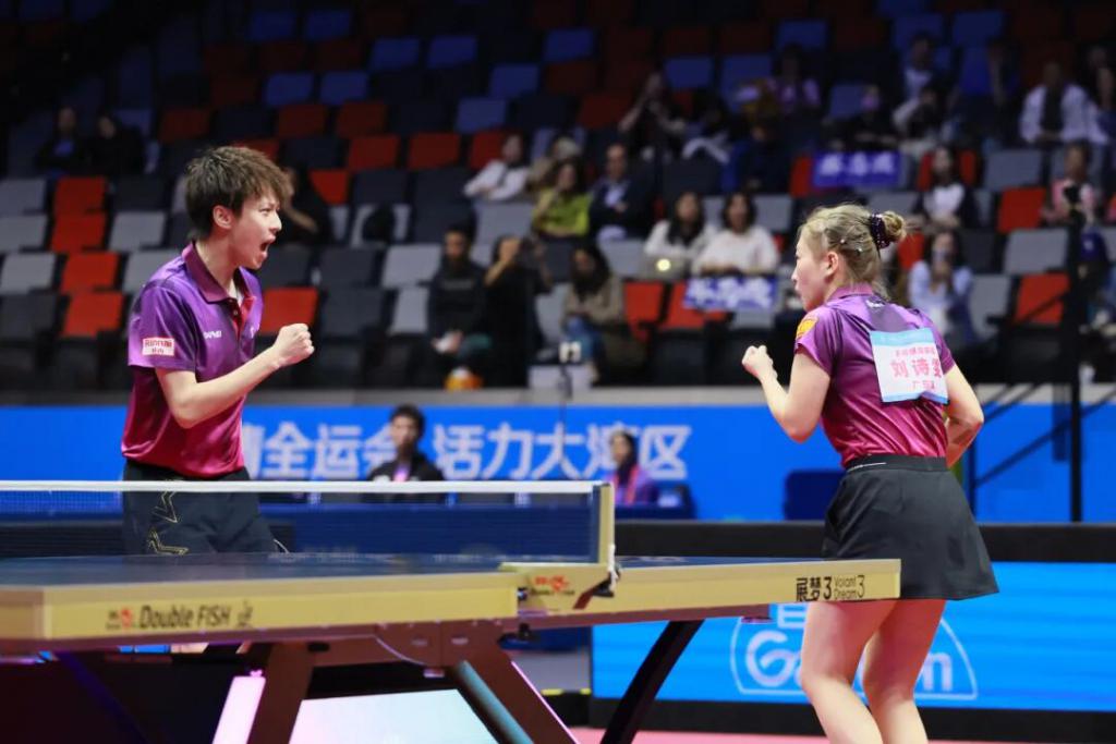 11 月 14 日,第十五届全国运动会乒乓球混合双打决赛上的林高远和刘诗雯。