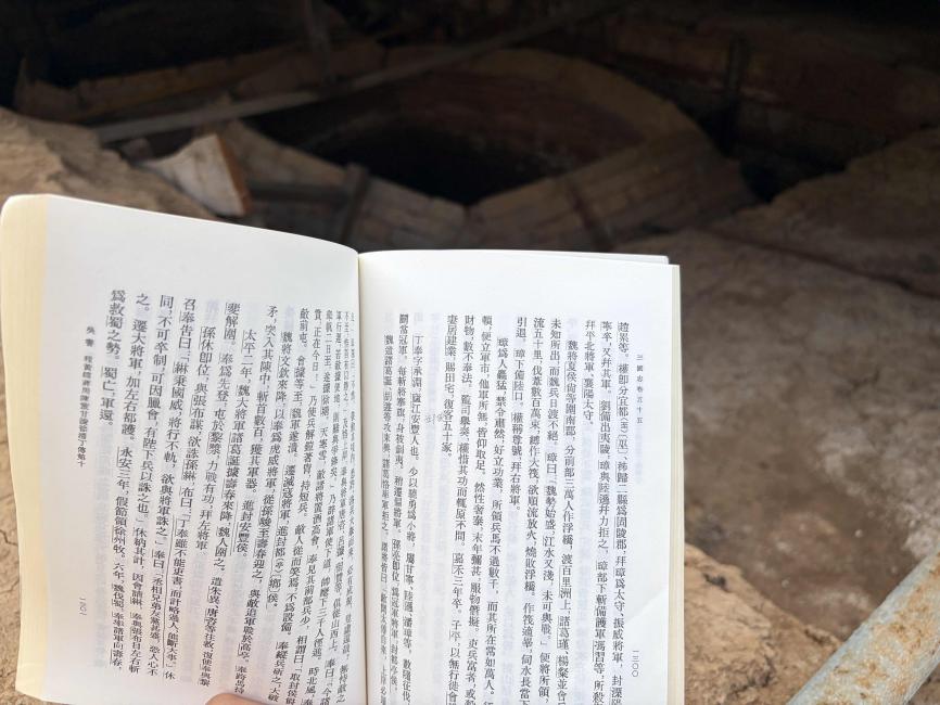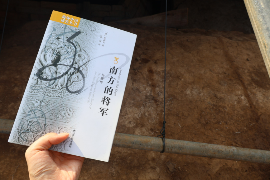 当同学们随着周老师的讲解来到M3号墓葬,本次考察迎来了第一个高潮。通过M3出土的买地券及后室二次修补痕迹,可认定M3为东吴虎将丁奉及其夫人的合葬墓。历史与现实在此刻共鸣,同学们激动地拿出《三国志》《南方的将军》等书,在这里留下一张跨越千年时光的珍贵合影。