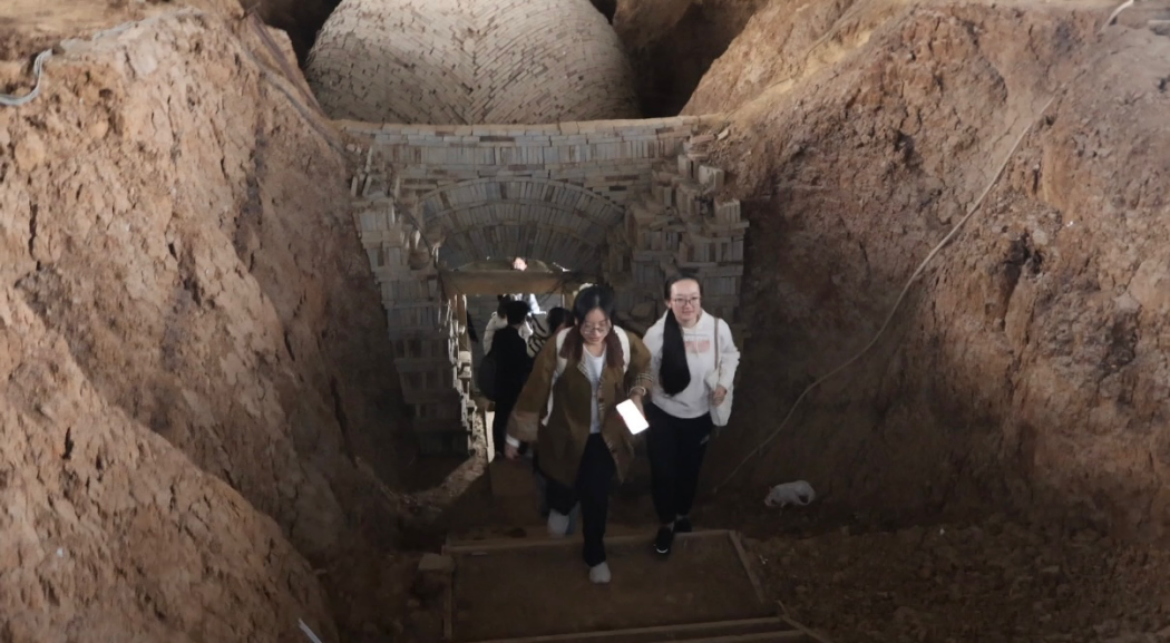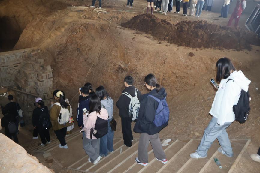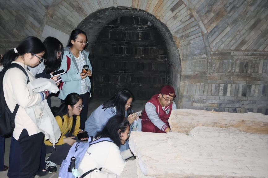 空气中浮动着细细的尘埃,同学们在墓室中小心翼翼地探索着每一块墓砖,墓砖上的纹饰静静述说着那段风起云涌的历史。尽管目前墓主人的身份尚未确定,但墓葬规格之高、随葬品之精美,无一不显示出主人身份之尊贵。