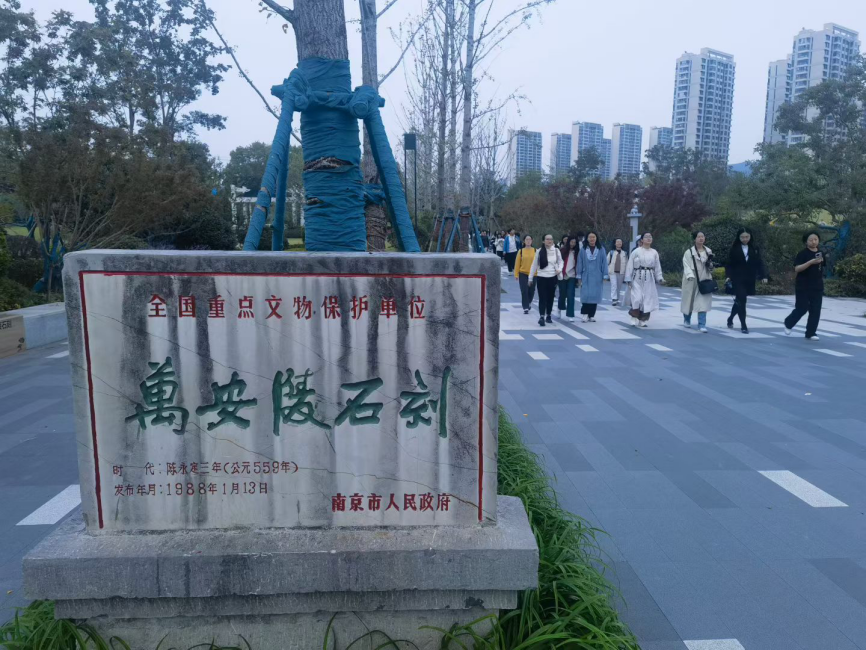 2025年10月31日,南京大学文学院童岭老师带领“《三国志》研究”课程及21级硕士生第四、第五、第六党支部的同学,对南京市鼓楼区伍佰村丁奉墓、江宁区上坊镇孙吴大墓及万安陵进行了考察,南京市文化遗产保护研究院龚巨平副院长、丁奉家族墓地考古发掘项目负责人周保华老师等给予了考察指导。本次考察活动还得到了南京大学“研究生培养创新项目”及南京市考古研究院、江宁区文化遗产保护中心等的大力支持。