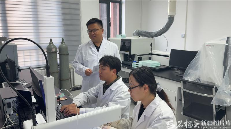 近日,中国农业科学院西部农业研究中心棉花布局与低碳生产技术创新团队首席科学家王占彪(左一)团队人员在进行室内试验。图 / 受访者提供
