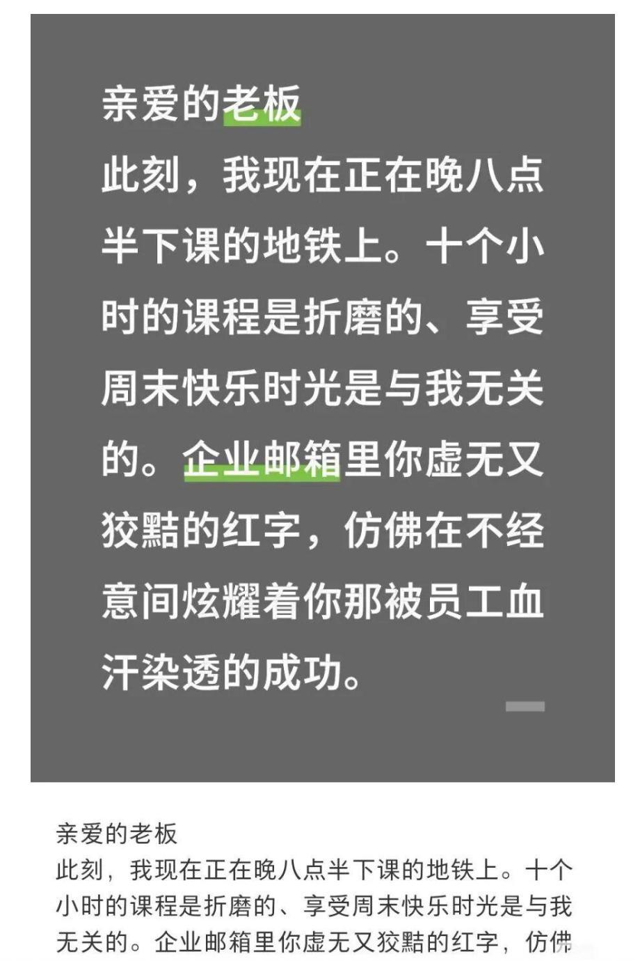 然而,这封充满理想主义色彩的信件未能成功在内部引发普遍共鸣。反而在社交媒体上迅速引发热议:" 今夜,所有 xdfer 都是南极人 ",还有员工直言:" 亲爱的老板,你虚无又狡黠的红字,仿佛在不经意间炫耀着你那被员工血汗染透的成功。"