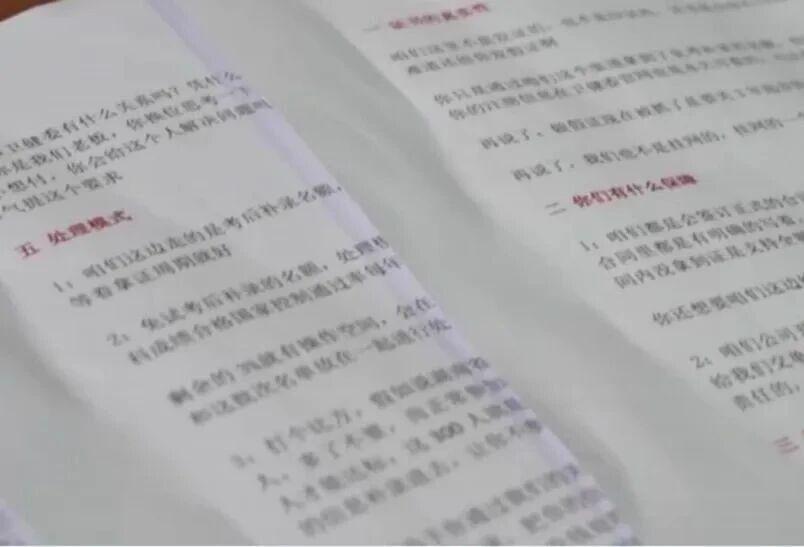 进入试用期的第一天,主管就给吴越发送了一份电子文件,里面写着与客户沟通的 " 话术 ",以及签署合同、合同内容、报价、公司营业执照等相关内容。