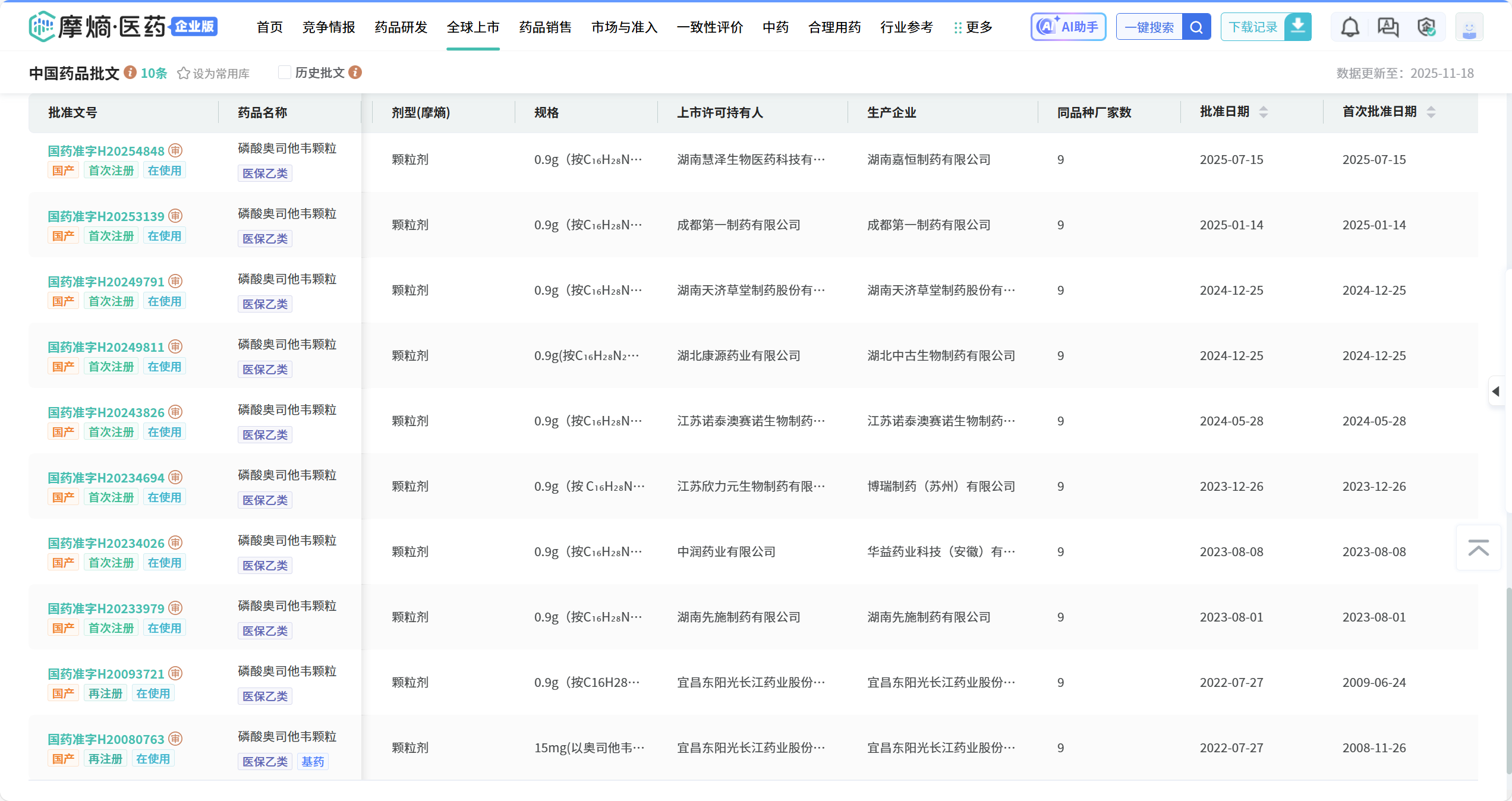 另据摩熵医药数据库,国内目前一共有10条磷酸奥司他韦颗粒获批记录,它们大多集中在2023年及以后获批。这些都会增大东阳光药的压力。尤其是,它依靠颗粒剂型的独家红利“躺赚”了很多年。