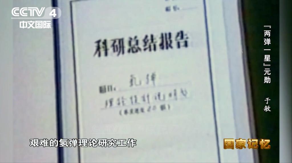 在于敏的带领下,艰难的氢弹理论研究工作渐渐进入正轨。研究小组独立掌握了氢弹原理,形成了一套从原理、材料到构型基本完整的氢弹物理设计方案。