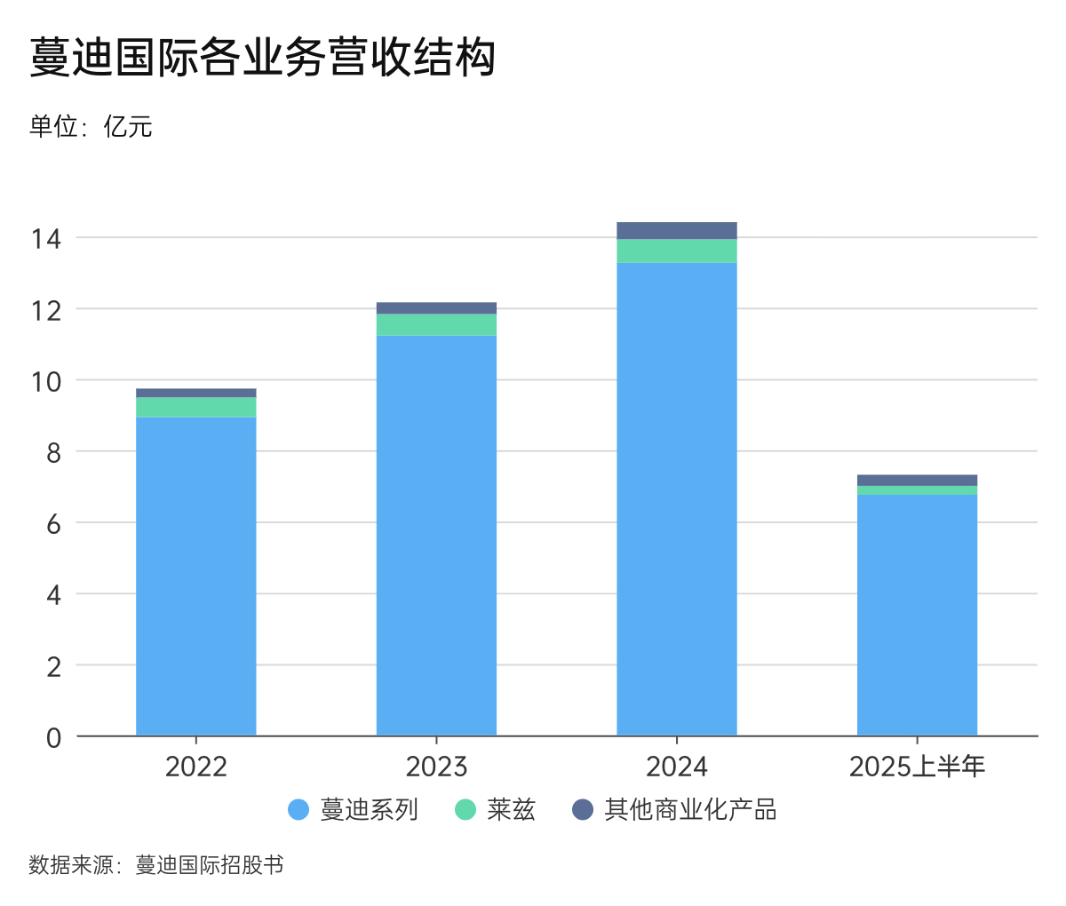 据招股书,2022年到2025年上半年,蔓迪系列实现营收8.93亿元、11.22亿元、13.26亿元和6.75亿元,占产品销售总收入的91.7%、92.3%、92.1%、92.4%。