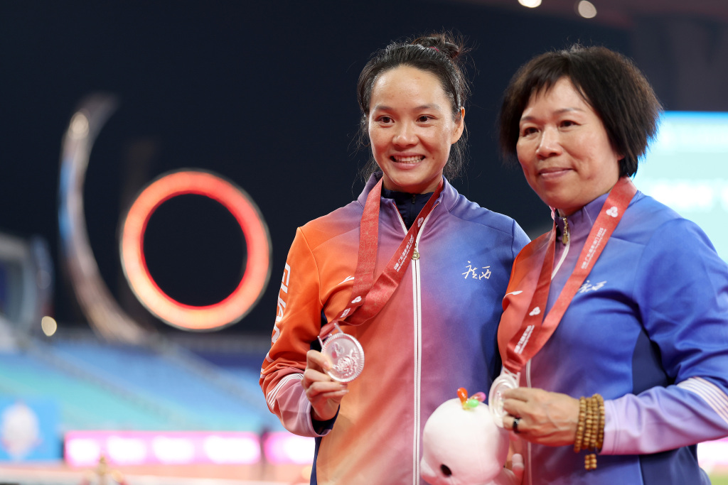 “这十几年时间,教练陪着我的时间,比陪着她女儿和家人的时间更多。”韦永丽透露,当年田玉梅的女儿高考失利时,她就陪着自己在北京训练。两年前在衢州的全国田径锦标赛夺冠后,韦永丽曾经和澎湃新闻记者分享过田玉梅教练对她的付出和牺牲,彼时,虽然家里的老人长期卧床不起,但退休后接受返聘的田玉梅为了能够帮助韦永丽找回状态,依然陪着她训练,“我欠教练和她的家人们一句谢谢,他们真的都很不容易。”