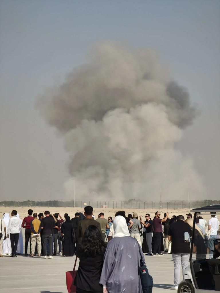 11 月 21 日,在阿联酋迪拜," 光辉 " 战机坠毁现场冒出滚滚浓烟。图源:新华社