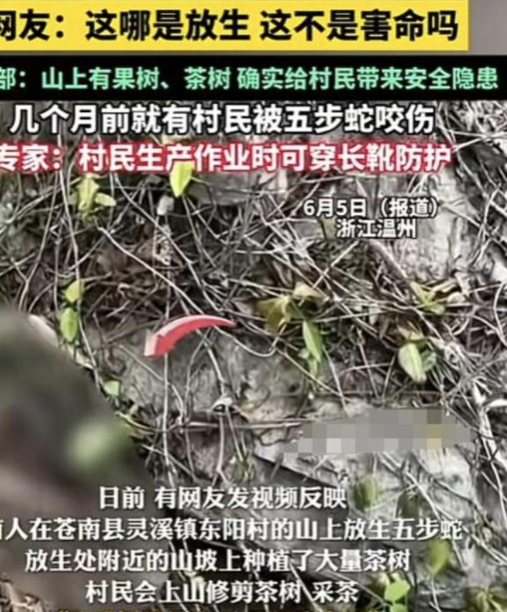 今年 6 月,在浙江某地的山上,有人竟然放生五步蛇,还有村民被咬伤送医。
