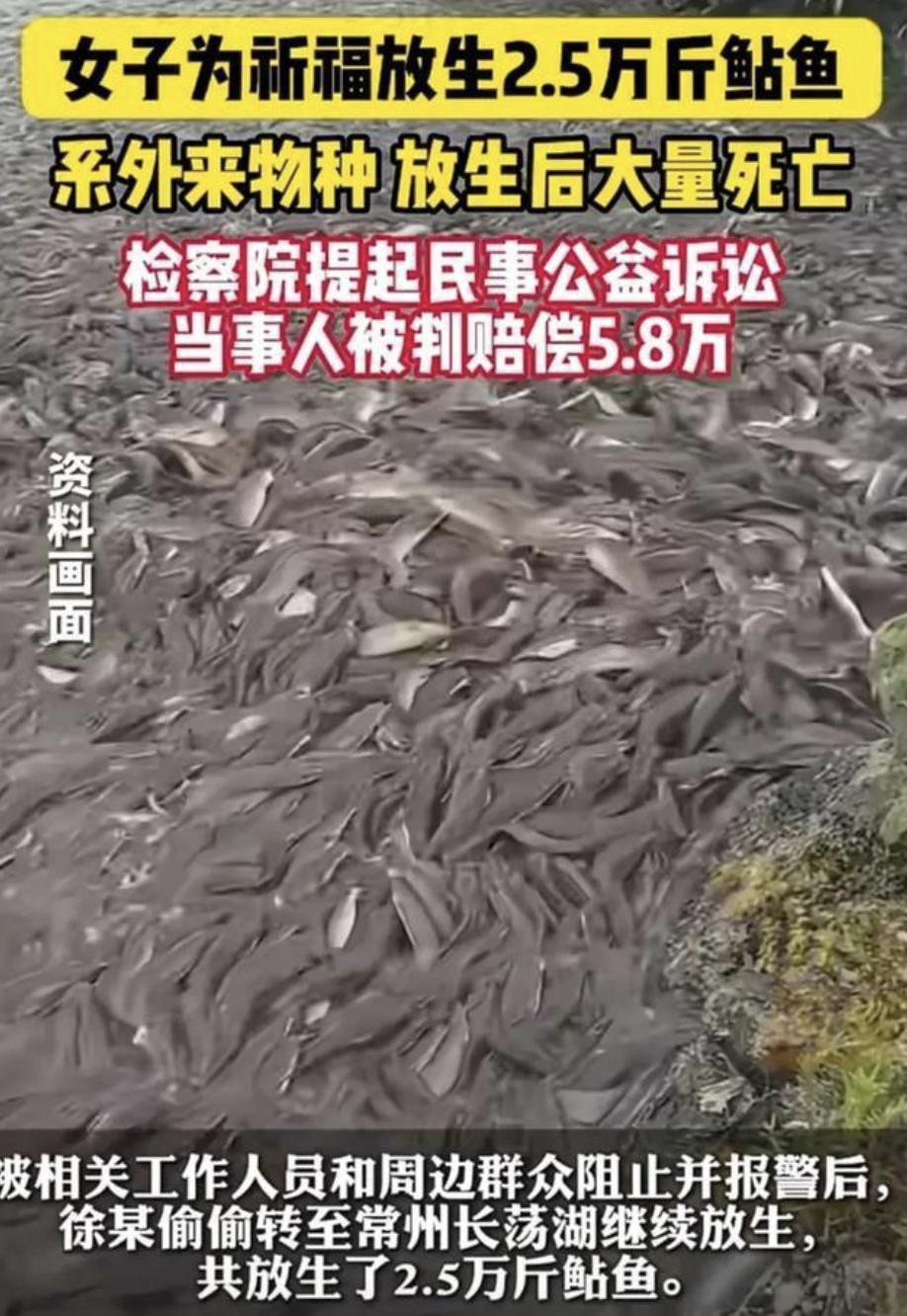 前面提到的在常州放生革胡子鲇的人,心里想着给亲友祈福,大手笔花了 9 万多块钱买了整整 2.5 万斤鲇鱼。最终渔政部门紧急出动,整整捞了 10 天,光死鱼就捞出 2 万斤。