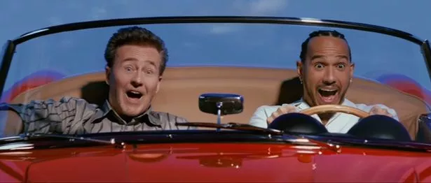 正如标题所示,他并不是唯一一个在重新想象的场景中客串的名人。当汉密尔顿饰演的角色驾驶法拉利250 GT加利福尼亚Spyder翻越山丘时,四次获得奥斯卡提名的爱德华·诺顿与这位F1传奇人物坐在副驾驶席上。