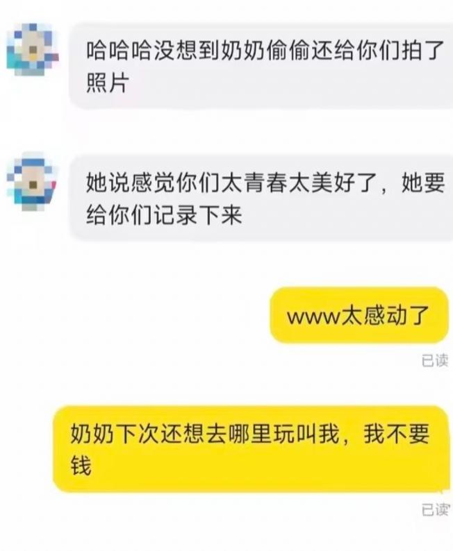 短短一天的相处,这份雇佣关系也在悄然转化,小 C 直言,如果有机会,下次还想陪伴奶奶一同出门—— " 下次免费!"