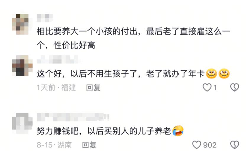 有人靠亲情防老,有人靠储蓄防老,也有人,靠 " 租儿女养老 "。