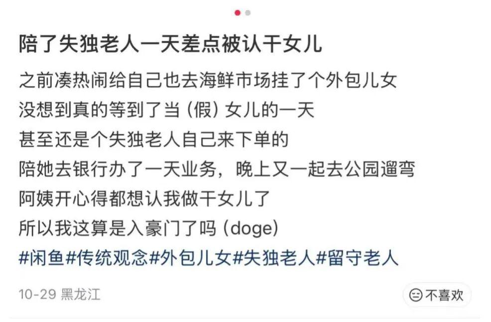 老年人的需求,被不少年轻人理解、看见,并渐渐创造出了一种新职业,有人称之为 " 外包儿女 "。