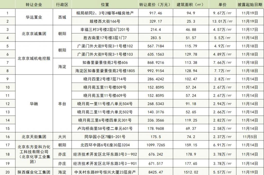 这 3 家北京国有房企仅 10 月单月挂牌的住宅、公寓类房产总转让底价就接近 3 亿元。