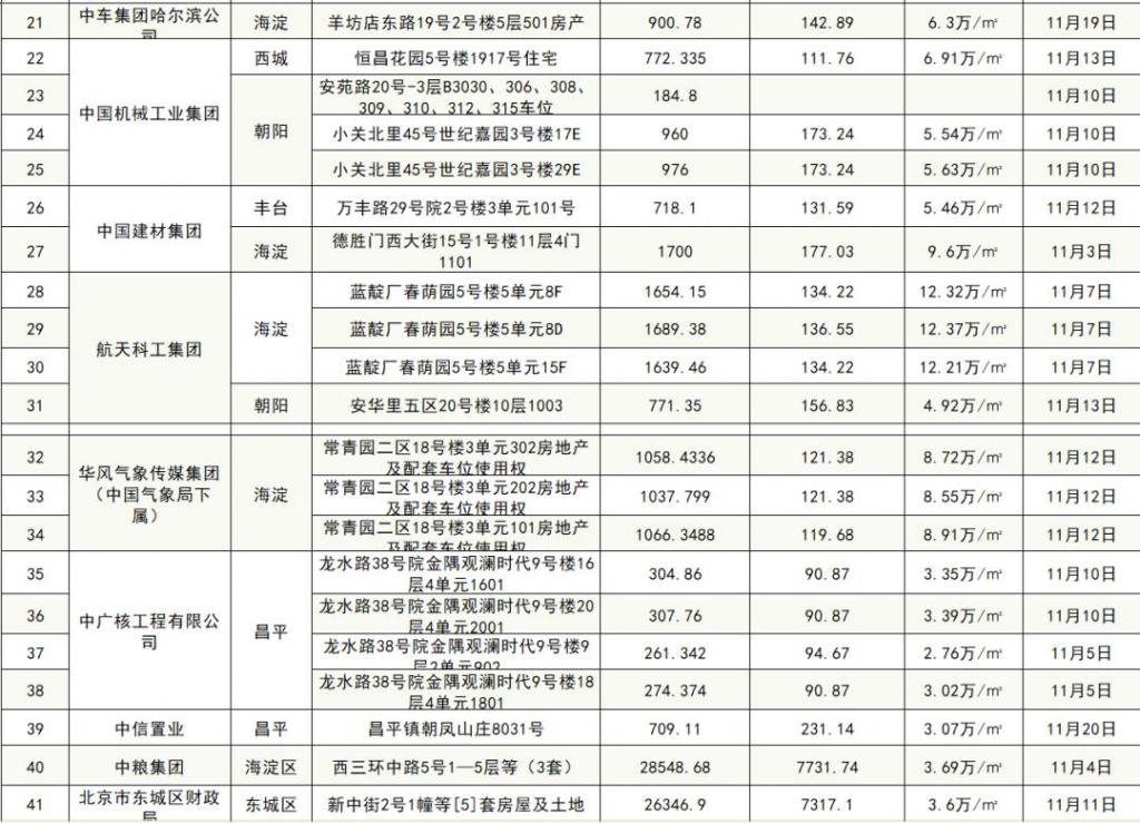 今年 10 月份,北京市西城区国有企业天恒集团一口气在北京产权交易所挂牌了 21 套住宅,转让底价合计约 7795 万元;