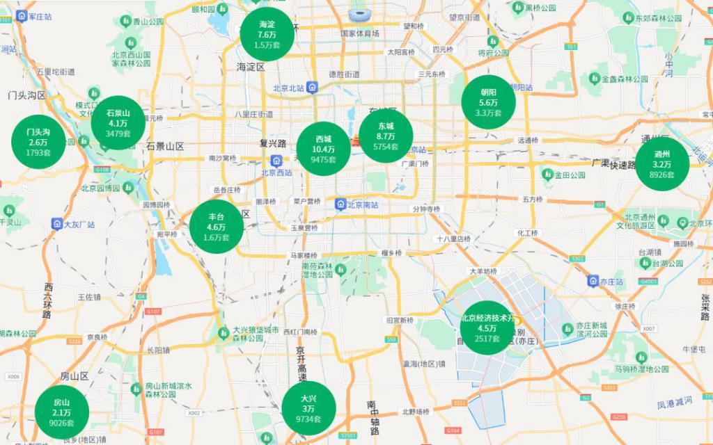 链家网上,海淀区的二手房挂牌量从年初约 1.3 万套,增加到了目前的 1.5 万套;西城区在年初的挂牌量约 9000 套,目前直奔 9500 套。