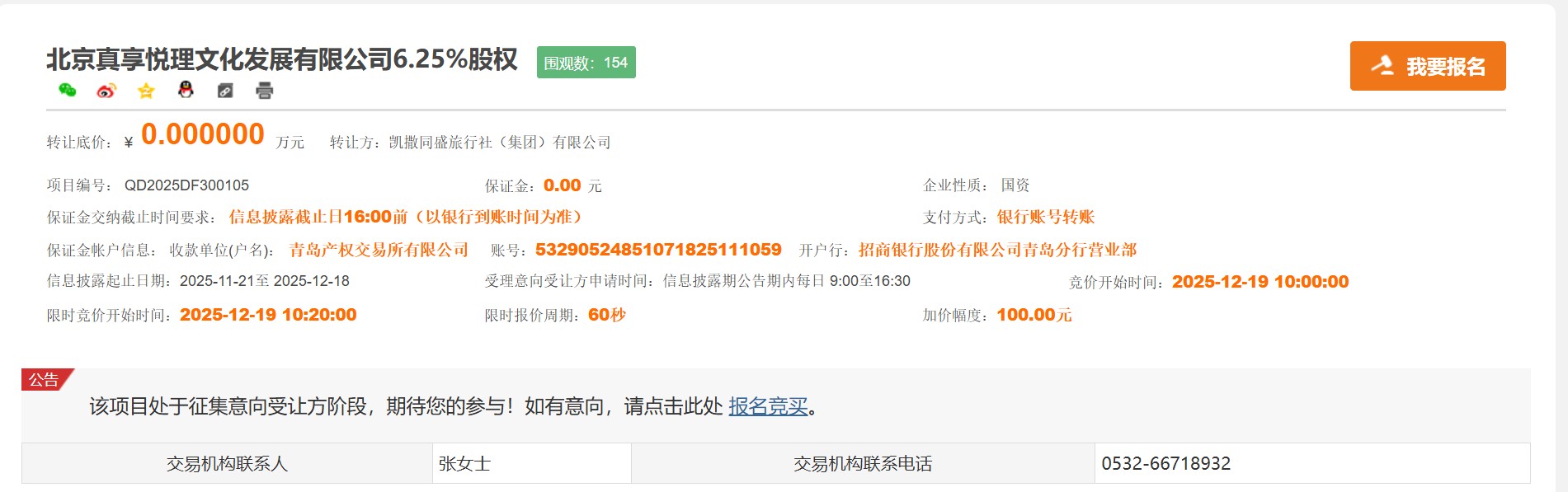 11月21日,青岛产权交易所交易平台发布的一则“国有股权”转让公告引发关注。