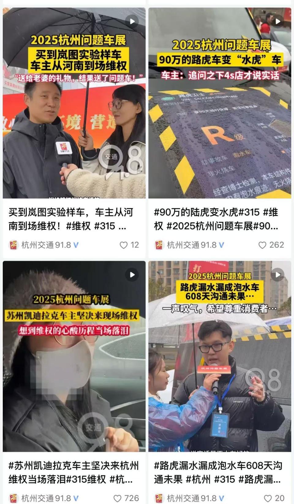 首页 > 科学 一年一度杭州问题车展:有车企阻拦车主入场,涉及诸多品牌 据杭州交通 91.8,一年一度的“杭州问题车展”举行,车主遇到的问题五花八门,很多车企工作人员冒雨蹲守,被指“有问题爱答不理,来车展穷追不舍”。有阿维塔车主质疑车辆 AEB 不灵。有极越车主对维修很苦恼。有车主在平台买到全损特斯拉。还有岚图、陆虎、凯迪拉克车主遇到各种问题。还有智界车主称前摄像头起雾导致智驾无法正常使用,来问题车展维权进场时遭遇阻拦。还有宝马、奥迪、蔚来、哪吒等品牌车主参展。