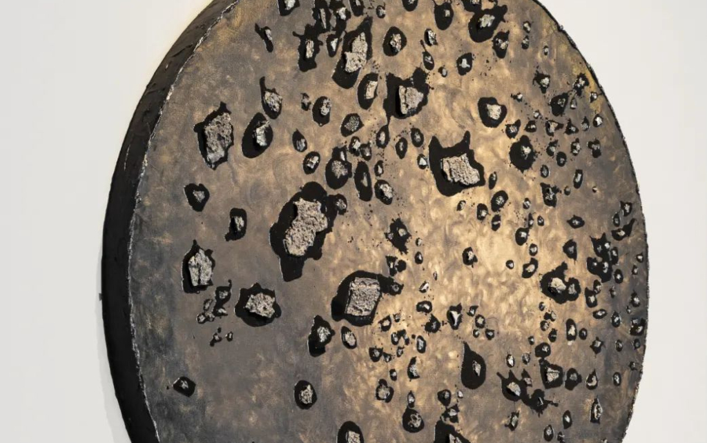 尹秀珍《小宇宙 》局部2016 丙烯,油漆,画布,金属 91dia.x6.5cm