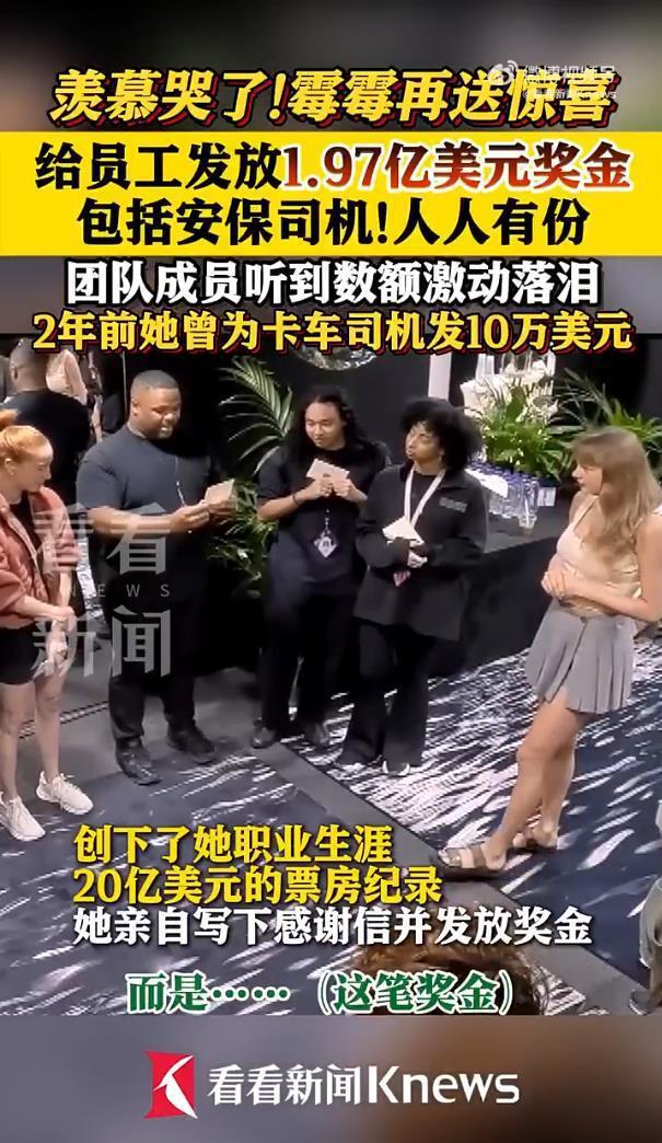 霉霉被曝给员工发近2亿美元奖金,团队成员们激动不已,许多人当场落泪