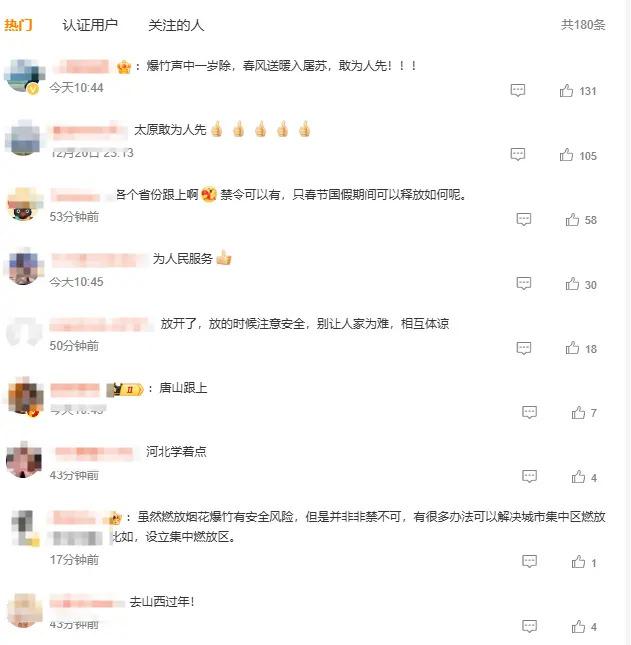 对于山西废除烟花爆竹禁放令,有网友表示," 年味回来了!" 不过也有网友提醒,要注意防范火灾。