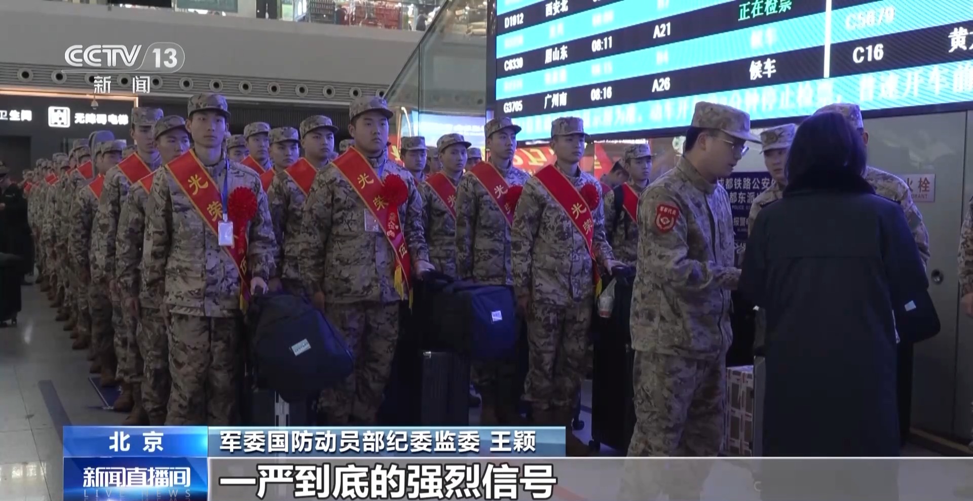 联勤保障部队后勤部运输投送处王雪松:针对新兵运输密集到发、批量大、时间紧、衔接紧凑的特点,我们协调铁路部门借助智能调度,动态监控、灾害预警监测等信息化手段,实时掌握运输动态,一旦出现晚点或异常情况,能够第一时间获取信息,迅速启动应急预案,避免滞留情况发生。