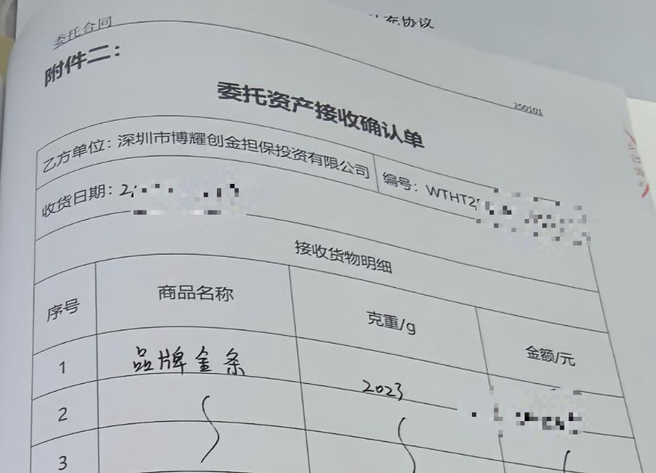 根据陈涛提供的一份合同,流程分为两步。投资者首先与深圳市金雅福首饰有限公司签订《黄金实物买卖合同》,确立基础买卖关系但不提取实物。随后,再与深圳市博耀创金担保投资有限公司(下称 " 博耀创金 ")签订《委托合同》,委托其将对应黄金资产用于 " 文化金渠道销售 " 等业务,而合同中明确的合作方正是深圳市金雅福黄金珠宝发展中心有限公司。