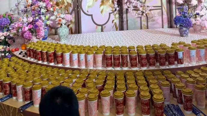 值得一提的是,12 月 15 日,霸王茶姬创始人张俊杰与天合光能联席董事长高海纯举办婚礼。婚礼现场部分视频及图片流出,给宾客准备的饮品是大量霸王茶姬奶茶。