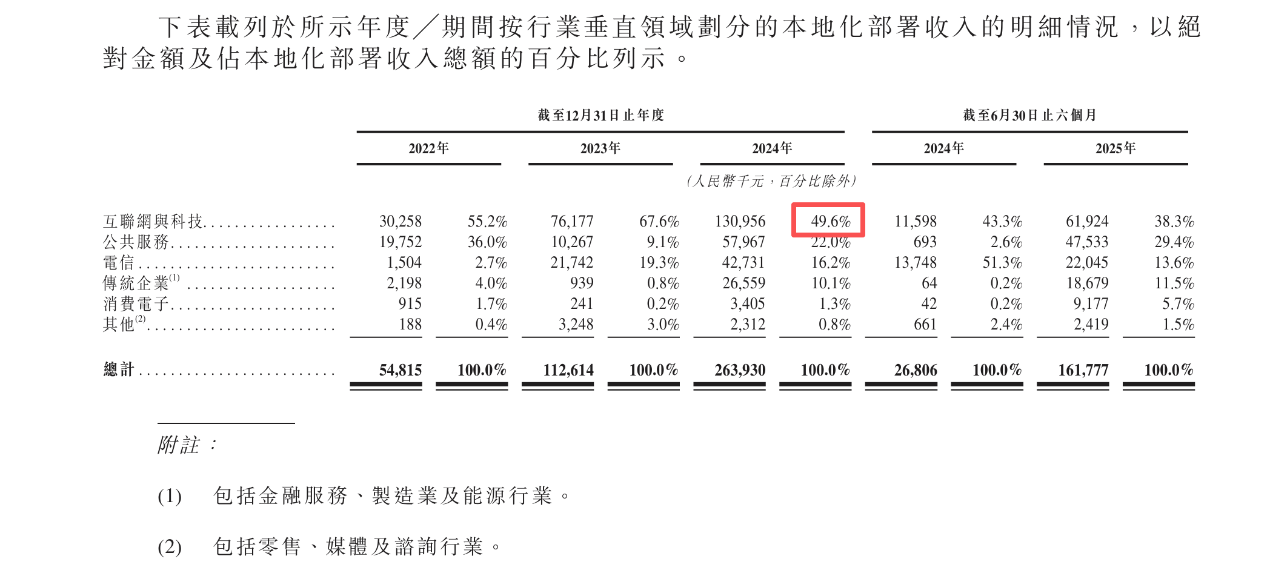 当然,智谱的商业化并非完全脱离传统ToB模式。本地化部署仍然是其重要收入来源,尤其在政务、金融、能源等对数据安全与实时性要求极高的行业。但值得注意的是,智谱本地化部署的互联网客户占到50%,且本地化部署毛利率一直保持在60%以上。与项目型软件不同,其交付产品是已经成熟的通用模型能力,这使得本地化部署在保持高毛利率的同时,并未削弱公司对模型主线的持续投入。