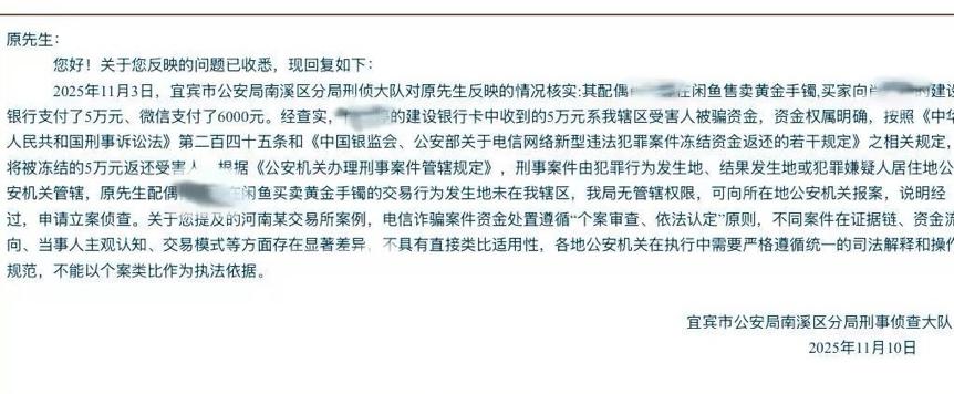 原晓的遭遇便是一个典型案例。当他援引河南某粮食商 28 万元资金被冻结后成功解冻的案例,向宜宾警方提出异议时,得到的回复是:电信诈骗案件的资金处置遵循 " 个案审查、依法认定 " 原则,不同案件在证据链完整性、资金流向、当事人主观认知、交易模式等方面均存在差异,不具有直接类比适用性。