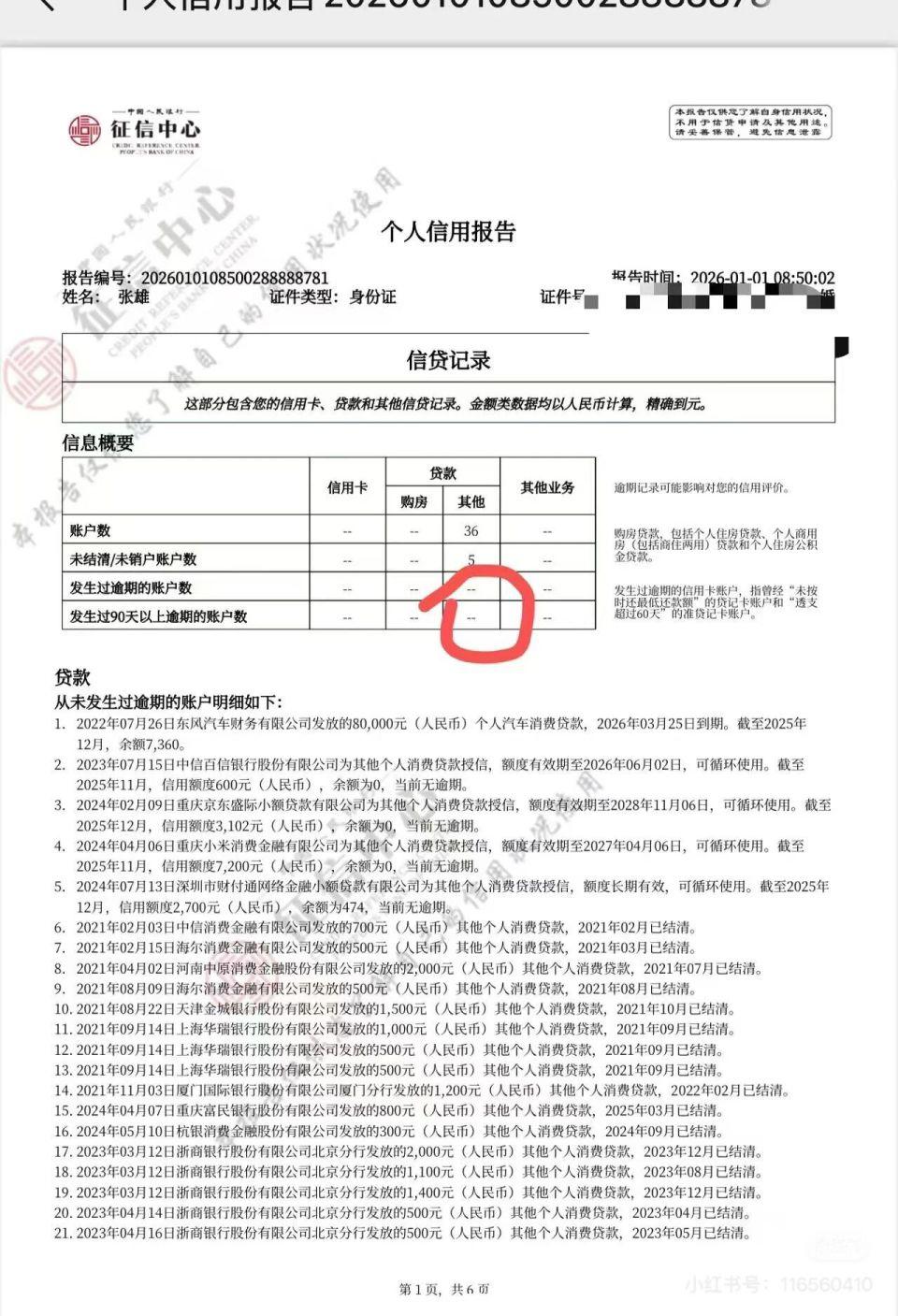 " 元旦早上查了一下征信确实已经没有逾期了。" 另一位来自山西的网友也在社交平台上晒出自己的个人信用报告,查询时间为 2026 年 1 月 1 日早 8 点。