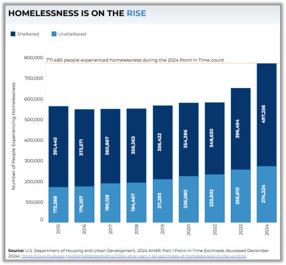 2024 年,美国流浪汉数量创下历史新高,有大约 77 万人成了流浪人士。