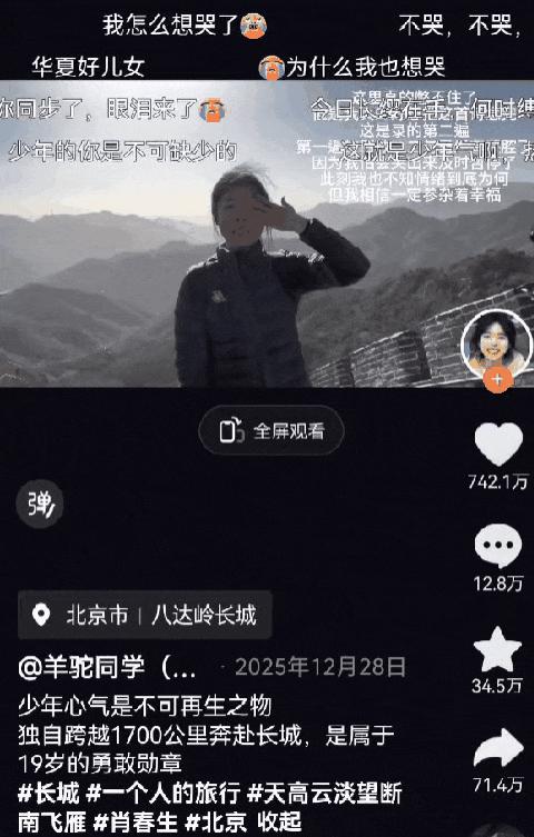那位本消失于镜头的大哥,又在她背后跟了一句:" 屈指行程二万 "。