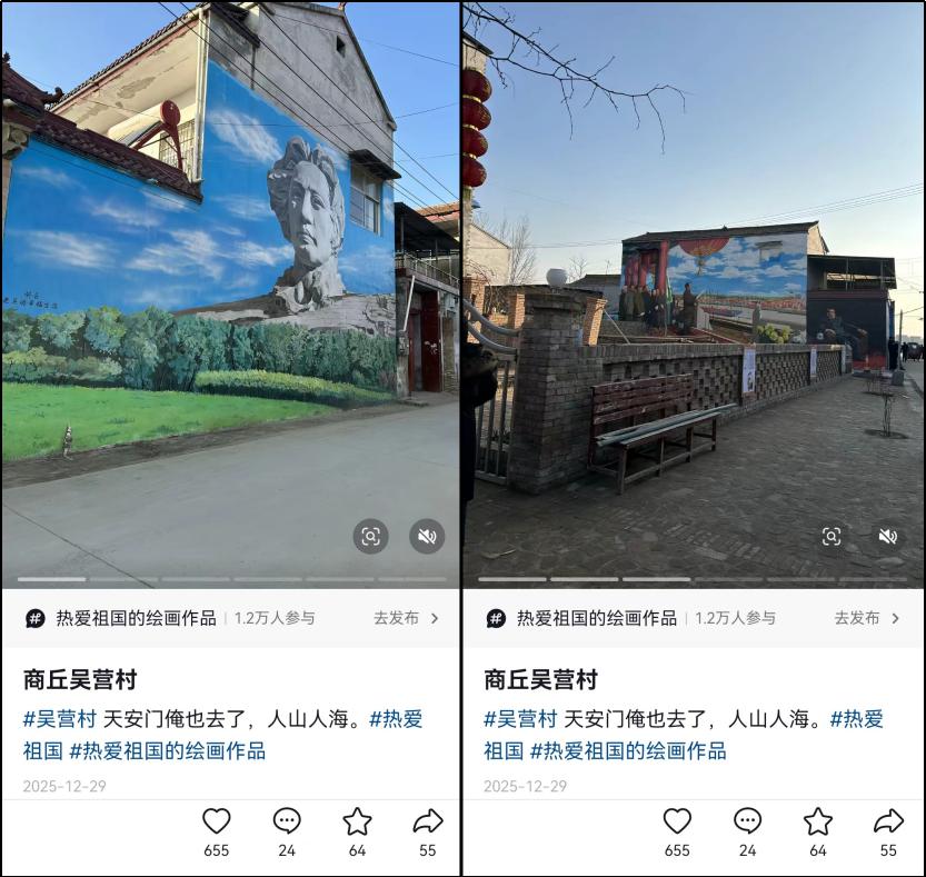 有了氛围就有了人气,河南商丘吴营村很快成了 2026 年第一个火爆全网的旅游打卡地。