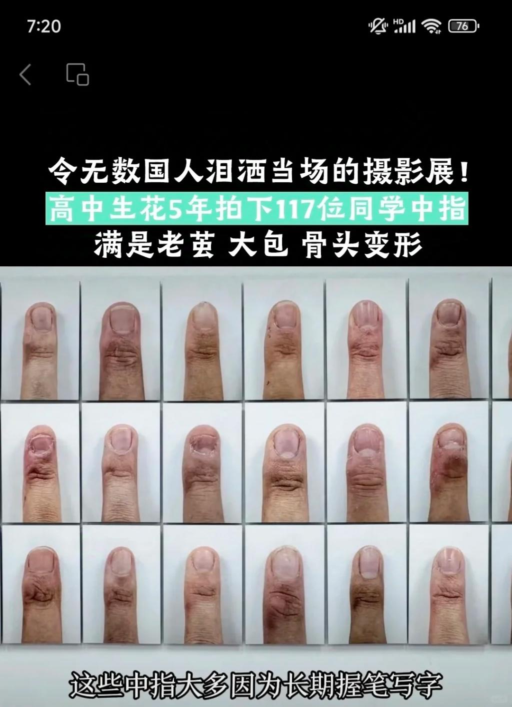 看到高中生用摄影记录下同学们常年写字后变样的手指,就骂:" 文艺青年的无病呻吟罢了。"