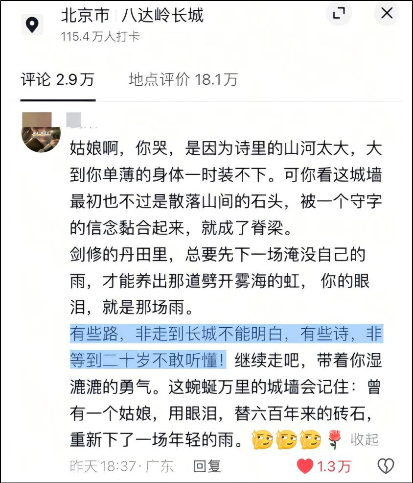 " 有些路,只有走到长城才明白;有些诗,只有等到二十岁才能听懂。"