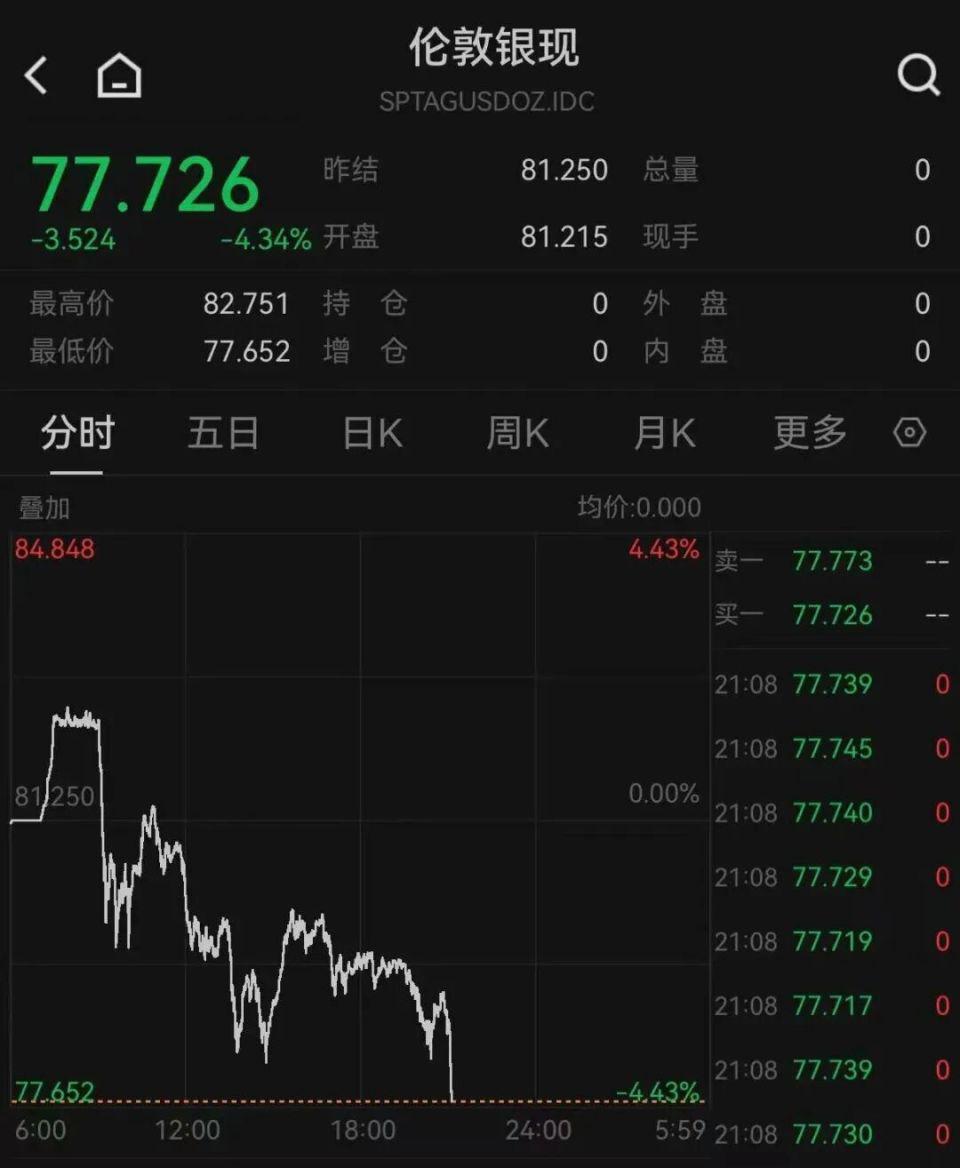 1 月 7 日晚间,黄金、白银集体下跌。截至发稿,现货黄金跌 1.34%,报 4434.52 美元 / 盎司;现货白银跌 4.34%,失守 78 美元 / 盎司。