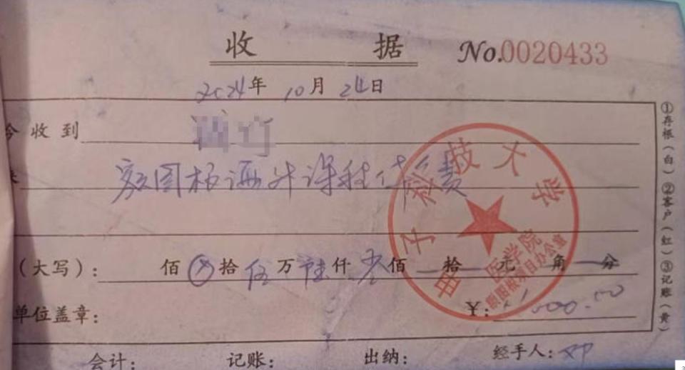 小马因大专就读口腔医学专业,故选择了 " 口腔医学 2 年直读 " 模式,并于 2024 年 8 月向娄超所担任法人的一家名为 " 歆艺娇播文化传媒 " 的公司支付了 26000 元 " 学籍管理费 "。